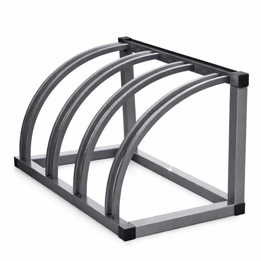 Велопарковка закруглённая на 4 места с размерами 110 см в длину, 45 см в ширину и высотой 45 см, весит 16 кг.