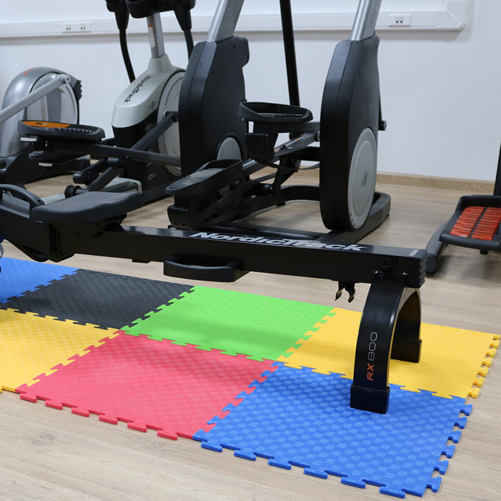 - Зоны под велотренажерами и эллипсоидами (мат не продавливается до пола).